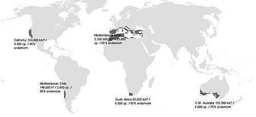 Data from Médail F. & Quézel P. 1997. Hot-spots analysis for conservation of plant biodiversity in the Mediterranean Basin. Ann. Missouri Bot. Gard. 84: 112-127. 1997